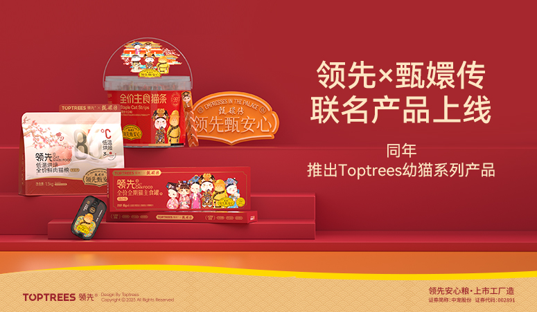 TOPTREES領(lǐng)先?致力于為每一位寵物家長及毛孩子們營養(yǎng)健康尋找解決方案,工廠由國內(nèi)寵物食品首家上市企業(yè)中寵股份全資建設(shè)。采用國際化高端設(shè)備,嚴(yán)遵國際寵物食品研發(fā)標(biāo)準(zhǔn),原材料可追溯,無菌安全生產(chǎn),產(chǎn)品端口做到真正的“有品質(zhì)、敢透明”。